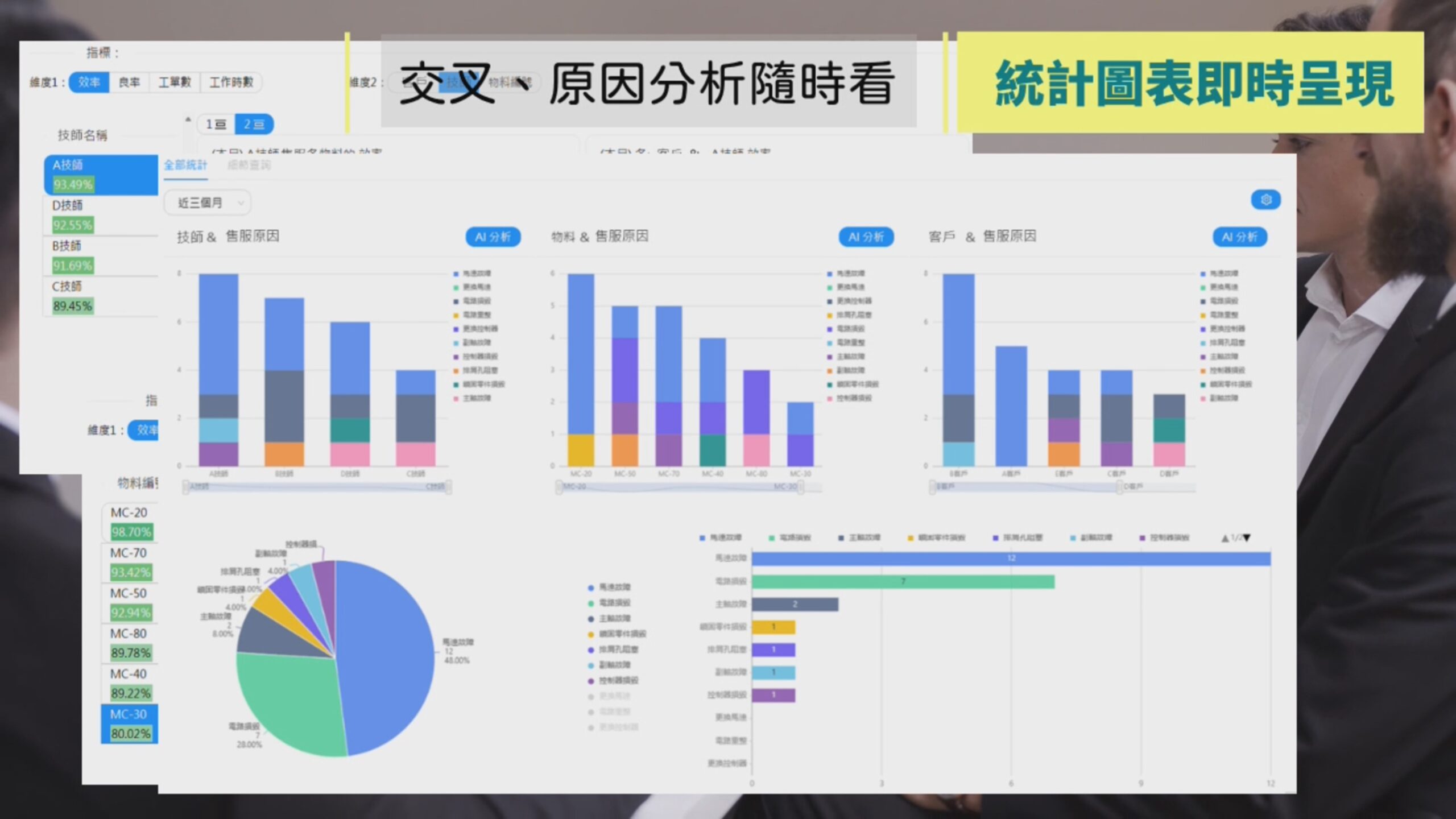 完整記錄所有售後服務紀錄後,將可針對維修機台及原因比對,快速掌握不同機台常見維修原因,進而使覆物流程更快速。