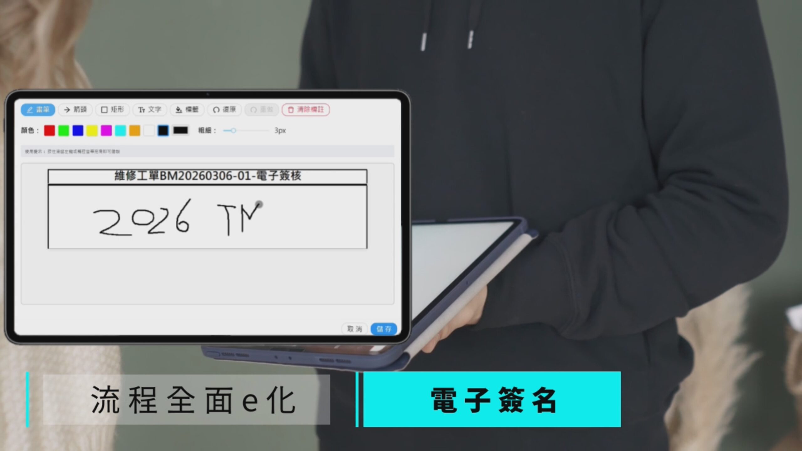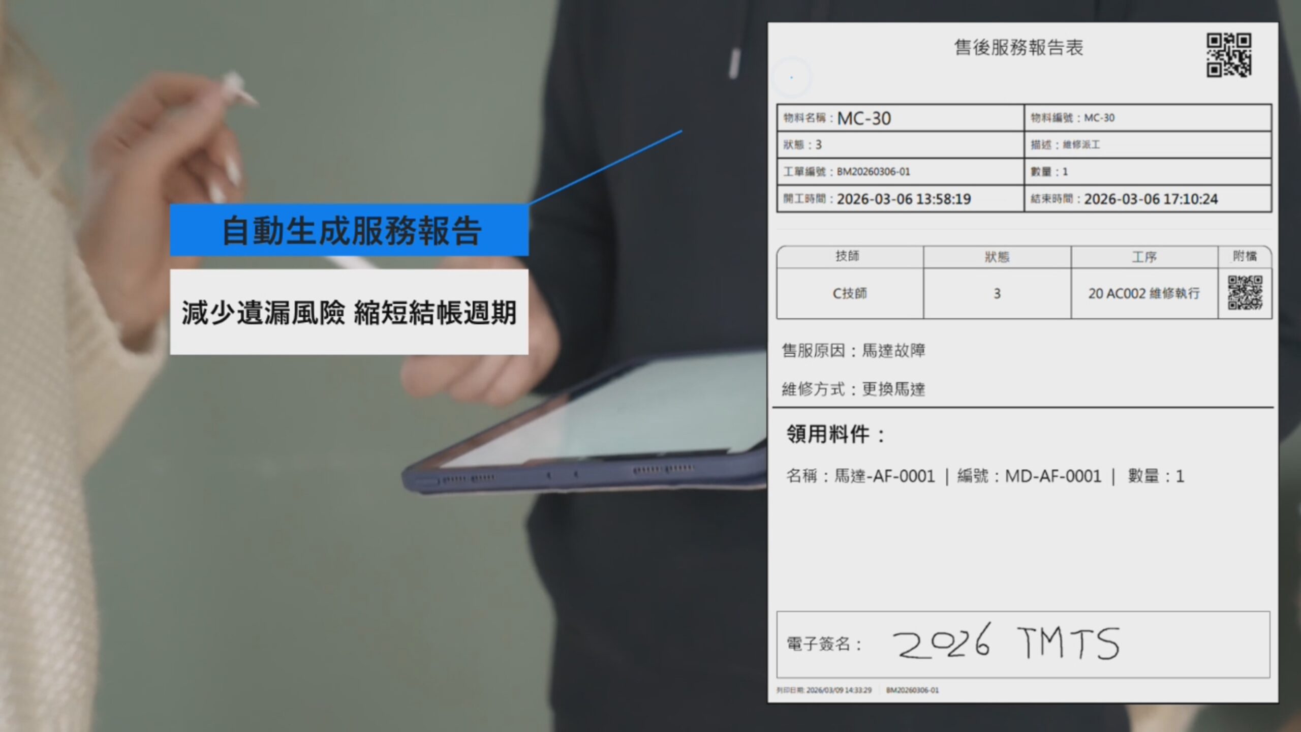 設備售後服務完成後,將自動生成服務報告交予客戶簽名,電子簽核使服務流程更透明快速。